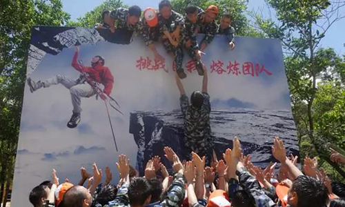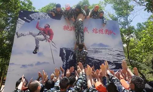 第二天8點整,美松同仁們來到"玫瑰海岸"開啟新一天的啟程,其中爬畢業墻項目深深的觸動著我們每個人內心深處最柔軟的部位,留給我們每個人更多的是感動與感觸.規定時間60分鐘內爬過高墻,不容許借助任何外力和工具,必須沿墻正面上去,每一個人踩在別人的肩膀上翻越一堵高墻,任風吹雨打。能當人梯的主動趴下為別人搭起人梯,整個攀爬過程任何人不能發出任何聲音,我們因為其中的一個人的吃力出聲而影響游戲規則,全體同仁受罰下來重新翻爬,每個人咬著牙,此時此刻不分男女,沒有埋怨,只有一個團隊。當最后一個成員劉迪水雙手緊抓倒數第二個人黃尤兵的腳,借助個人手臂力量支撐到最后爬過畢業墻的時候,所有人都歡呼了,啊!我們成功了,同事們相互抱在了一起。。。。。。原本有私心的領隊自告奮勇的向教練舉手自薦當總指揮的那一刻,她自私的以為當了指揮官可以不用辛苦的翻越那座高達四五米高的畢業墻,此時此刻,更多的是羞愧。當看到陳總從始至終當主力人梯用肩膀扛上每個同仁時肩膀上留下的瘀青,周總監從第一個爬上墻至拉起全體58位同仁時留在手臂上的劃痕,甘為人梯的黃經理汗如雨下、當繩子助力最后一位同仁的黃尤兵全身上下的帶著血跡的傷痕,還有很多沒有被點名的同仁咬著牙忍痛的堅持,女將廖路嬌默默的用單膝跪地當副梯默默支撐最后一位隊員的奉獻精神時。小編作為領隊作為總指揮官坐在地上抱著雙臂哭了,任眼淚劃過臉龐。。。。。。更多的只是感動,這個團隊給予的力量,這個團隊的凝聚力?!胺角笊漠厴I墻”訓練是對我們意志的考驗,4米高的筆直的石墻,沒有任何工具,大家齊心協力共同努力,征服"石墻",但是更讓我們無法忘懷的是作為人梯底座的隊員不知肩上,身上受了多少“踐踏”,更讓人敬佩的是為了幫助最后一名隊員順利攀上畢業墻,取得最終勝利的隊員,使同舟共濟的團隊精神得到了最好的升華。最后男女同事們分別圍成二個大圈,將總指揮官圈在最中間,發表最真誠的感恩肺腑之言,當問及對美松的未來,對總經理的決策,有沒有信心的時候,所有同仁激情四射異口同聲的回來:有!有!有!