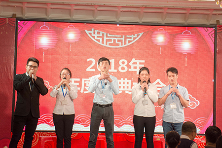 隨著陳董事長的開幕致詞,精彩的節目正式拉開帷幕!美松各部門都分別準備了精彩的節目,首先是研發部門帶來的勁爆舞蹈,在過去的一年中,研發部門發揮著企業發展創新的關鍵作用,在舞臺上同樣給大家帶來耳目一新的感覺。資材部門的《公司明天會更好》,他們用朗朗上口的三句半道出企業歷年來發展歷程以及公司未來發展的美好期盼。期間不乏一些平日里的隱藏高手,組裝部的《廣東愛情故事》《成都》,二曲唱完,余音繞梁,不愧為美松歌神。精彩輪番上演,掌聲根本停不下來! 內容百花齊放,笑點不斷,掌聲四起,把年度盛典火熱的氣氛渲染的更加濃烈!