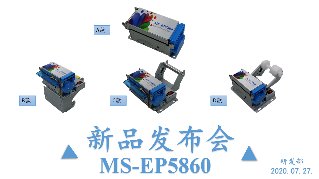 在7月的終章八月的伊始,美松公司召開新品發布會,繼4月發布的MS-EP5860之后,受到許多友商的關注及來自市場的呼聲,在初始機型的基礎上衍生出MS-EP5860系列產品來滿足廣大客戶群體需求。其中為了應對不同機器內部情況生產的MS-EP5860系列,包括應對平板機型超薄機型誕生的MS-EP5860—V,更適用于排隊機、點餐機等等;同時設計添加了機身結構更為緊湊的MS-EP5860-H,對比傳統58mm打印機而言機身結構更為緊湊小巧,機身側面長度相較傳統結構縮減三分之一;面對打印不干膠標簽需求的市場前提下研發設計出MS-EP5860-B,提供可調節紙軸以及應對多種規格標簽紙的出紙嘴,來應對更多富有挑戰情況下標簽打印需求。