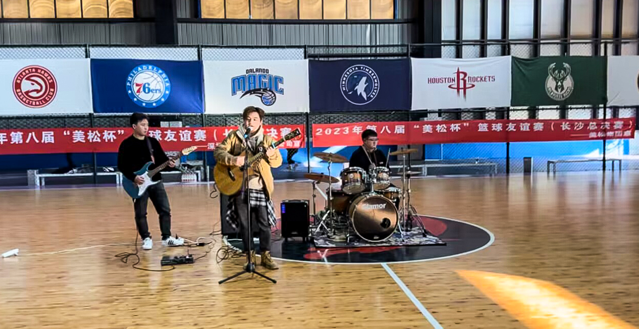 比賽一開始,深圳隊先發制人,李杰(李總)以一個漂亮的2分灌籃球先打開局面后,老將陳斌(陳總)作為進攻端也表現出驚人的團隊默契,對對手的限制非常成功,發揮其自身的身高優勢把籃板球搶的是順風順手啊。直至上半場比賽結束,深圳隊一直遙遙領先14分。也許是天氣太過寒冷,雙方運動員的賽前熱身還不夠,借著中場休息的時間,雙方運動員都在緊鑼密鼓的投球熱身中,觀眾們也不閑著,欣賞“菁音藝術”樂隊帶來的歌曲與架子鼓表演。