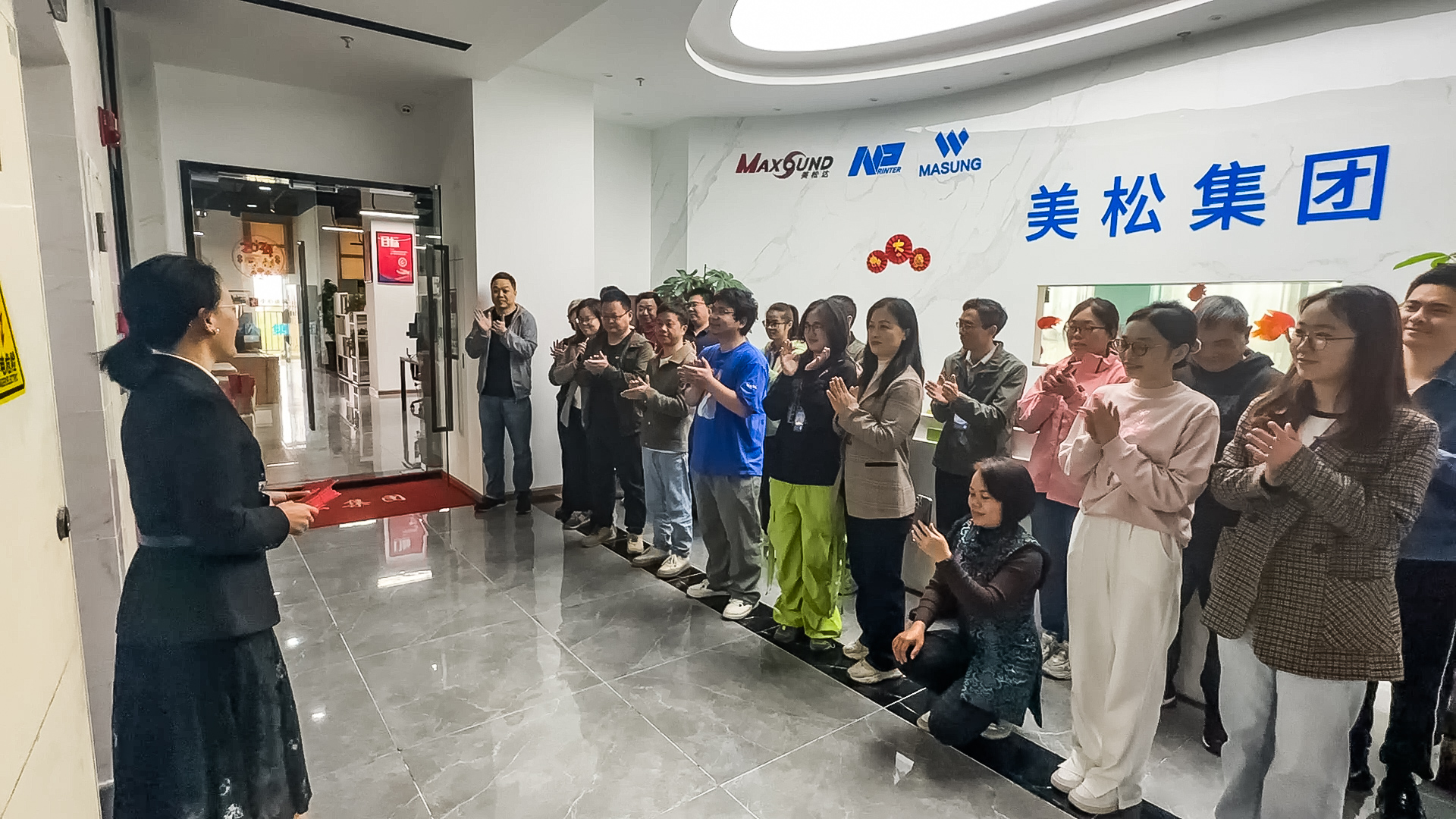 爆竹聲聲送吉祥,開工大吉夢啟航,伴隨著新春的祝福,新年的期望,我們告別了家鄉,再次回到熟悉的工作崗位上,開啟新一年的工作,在此祝愿大家:2024年開工大吉,萬事順利!陳斌董事長攜長沙美松全體人員舉行開工儀式,并分發開工紅包,員工們個個喜笑顏開。