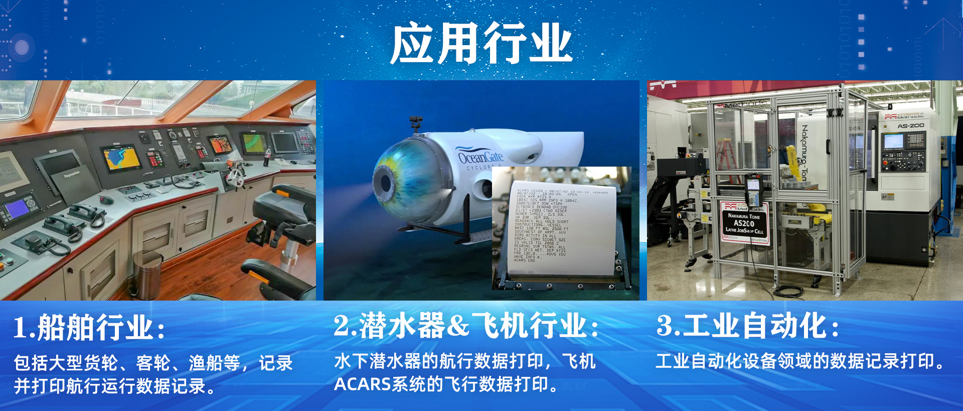 目前美松嵌入式熱敏日志回收打印機(jī)&船舶車(chē)鐘打印機(jī)MS-CM-WSDM,主要是適用于船舶行業(yè)的數(shù)據(jù)記錄的流水打印,應(yīng)用于大型貨輪、客輪、漁船等船舶。在潛水器&飛機(jī)行業(yè)有相似類(lèi)型產(chǎn)品的需求。工業(yè)自動(dòng)化設(shè)備領(lǐng)域也一直是我們美松該類(lèi)型產(chǎn)品進(jìn)行專(zhuān)業(yè)延伸拓展的主要方向之一,可發(fā)揮公司產(chǎn)品定制化的特點(diǎn),獲取工業(yè)自動(dòng)化設(shè)備在數(shù)據(jù)記錄打印機(jī)這類(lèi)型產(chǎn)品的需求。