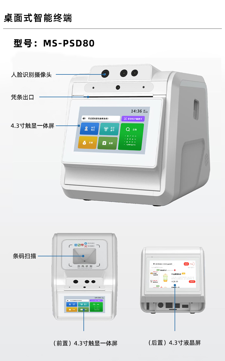 AI人臉識別掃描收銀打印一體機MS-PSD80