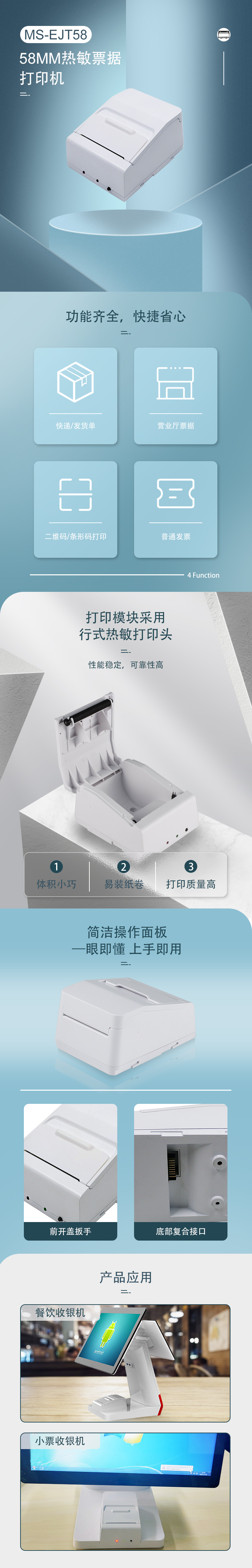 美松(MASUNG)MS-EJT58打印模塊采用行式熱敏打印頭, 它具有高速打印、噪聲低、可靠性強、打印質量高、切紙厚度大、結構小巧等特點, 使安裝維修更方便快捷。