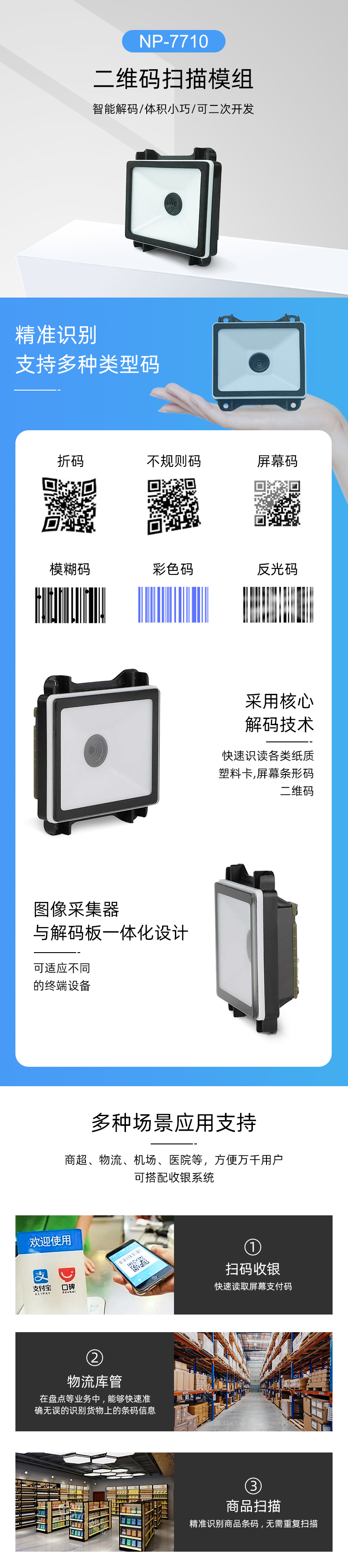 快速識別紙質和屏幕條碼 高兼容性的傳輸接口,適配更多設備,數據傳輸更加安全可靠 接口豐富,內置RS232、USB、TTL5V、TTL3.3V 高集成度,21mm厚小機身,非常方便的用于高度集成應用環境