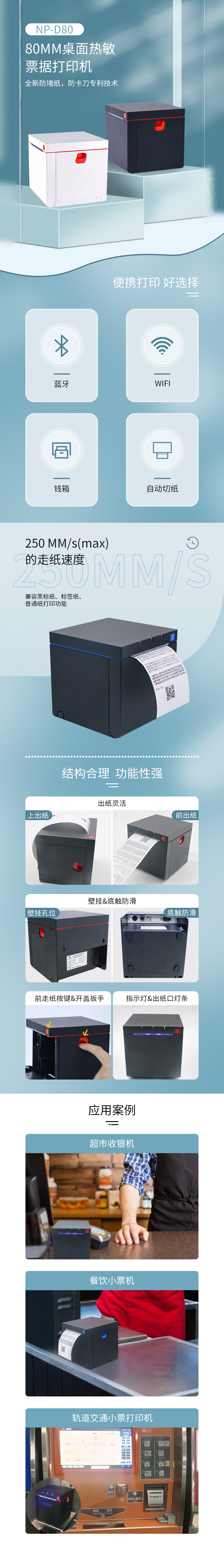 1.紙將盡可手動調節(jié)大小,精確到張數(shù) 2.防堵防拽紙專利技術 3.支持熱敏紙,黑標紙,不干膠標簽紙打印功能 4.出紙方向多樣,前出紙或者上出紙