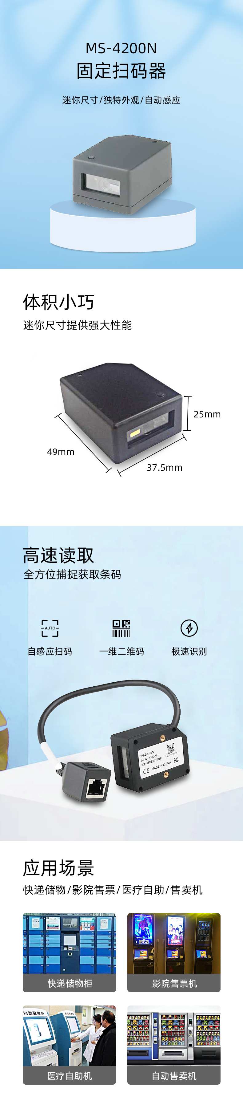 1.兼容紙質和電子屏,一維和二維條碼均可識讀