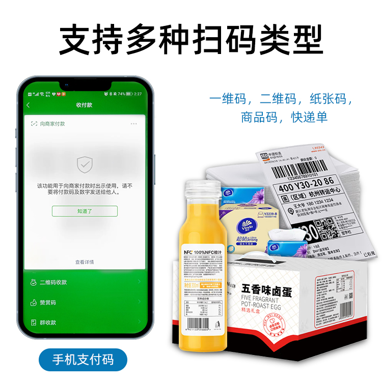 Interleaved 2 of 5, ISBN, Code 93, Code 11,UCC/EAN-128 GS1 Databar, Matrix 2 of 5, Industrial 2 of 5,Code 128, EAN-13, EAN-8, Code 39, UPC-A, UPC-E, Codabar,Standard 2 of 5, MSI-Plessey,GS1 composite code,等 |