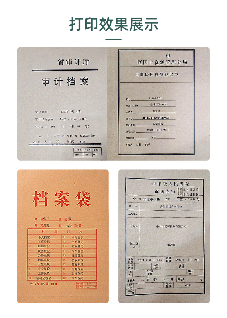 1.專業(yè)打印牛皮紙,不動產等證件內頁,無酸紙檔案盒