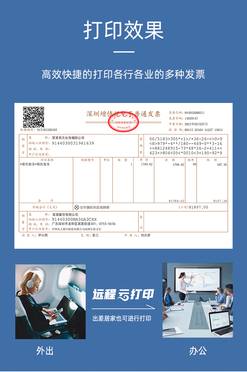 NP-DC400具有標準發票打印功能,能輕松的打印電子發票,專屬操作軟件,也可連接手機進行發票,云發票打印機