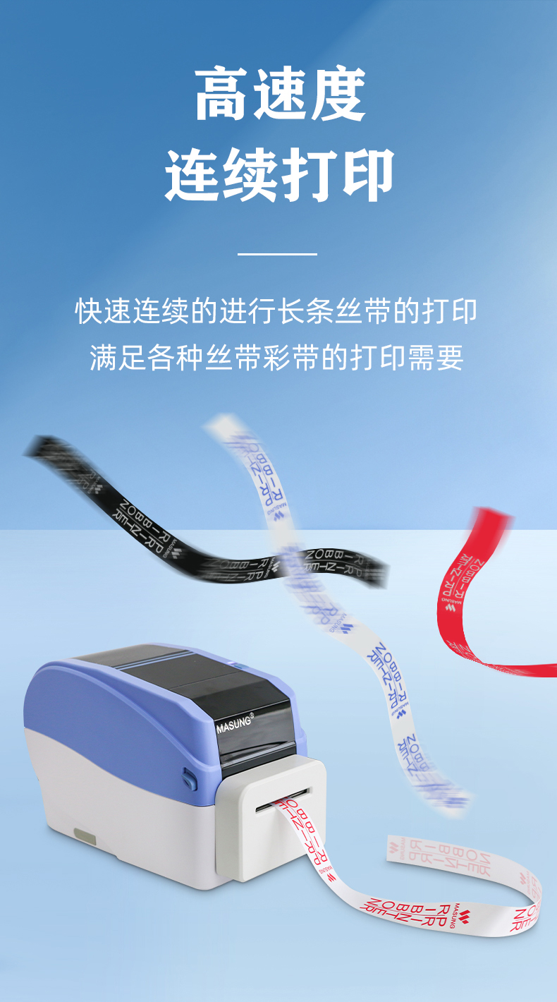 MS-1740C_桌面式絲帶打印機是由美松自主研發的一款絲帶彩帶飄帶打印機,MS-1740C的寬度為最小26mm,最大寬度為54mm,可適用的絲帶彩帶范圍廣泛,應用于禮物包裝絲帶,節日活動絲帶等領域,MS-1740C帶有自動切刀,可進行彩帶和絲帶的快速切割,切刀更快且無殘留