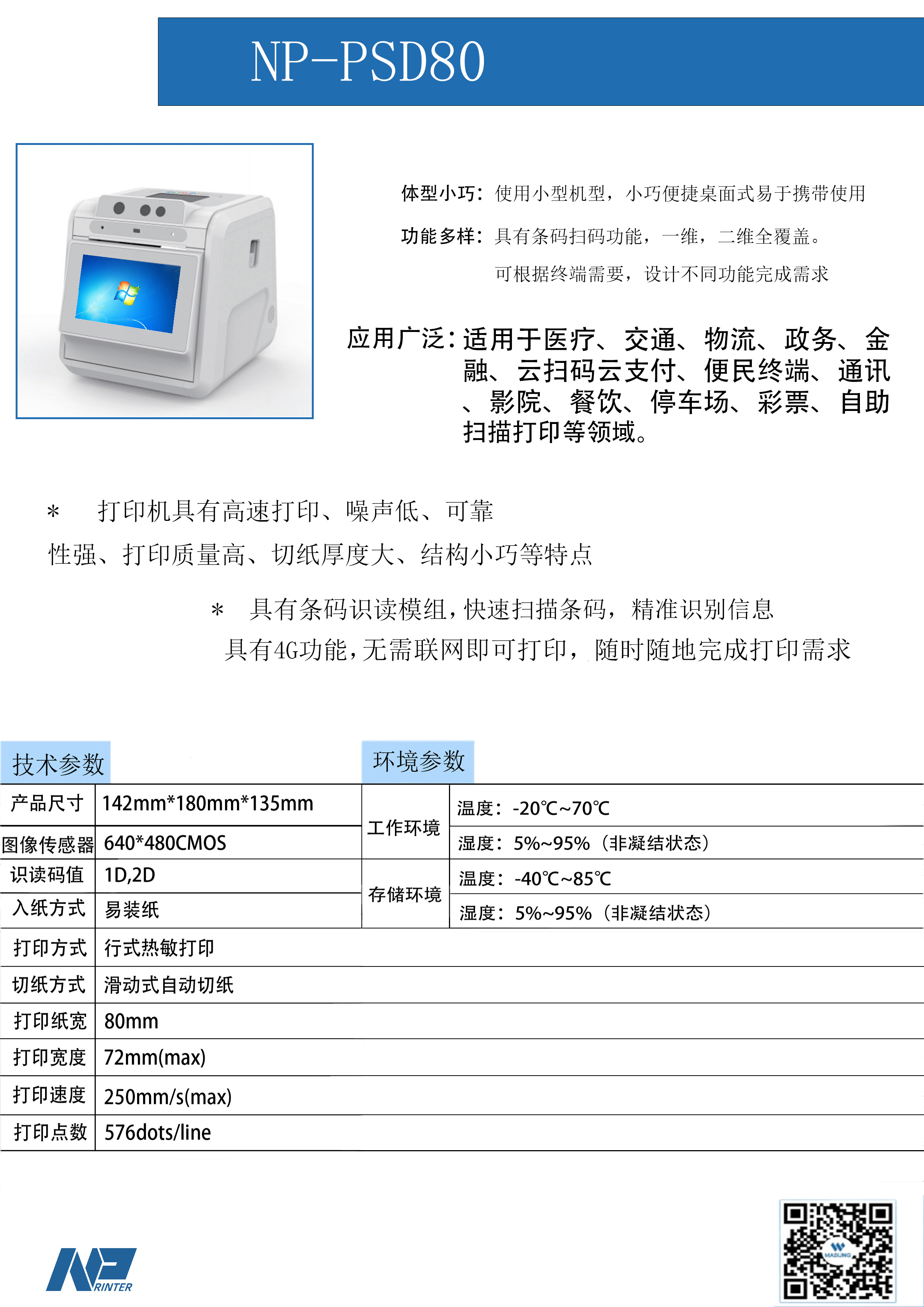 體型小巧:使用小型機型,小巧便捷桌面式易于攜帶使用 功能多樣:具有條碼掃碼功能,一維,二維全覆蓋。 可根據(jù)終端需要,設(shè)計不同功能完成需求 應(yīng)用廣泛:適用于醫(yī)療、交通、物流、政務(wù)、金 融、云掃碼云支付、便民終端、通訊 、影院、餐飲、停車場、彩票、自助 掃描打印等領(lǐng)域。