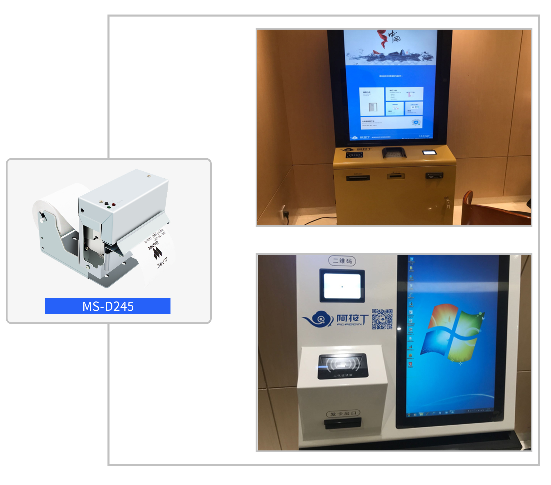 面對各類新型酒店服務(wù)的不斷發(fā)展,越來越多新型設(shè)備被應(yīng)用在行業(yè)之中。美松公司通過展會接觸山東網(wǎng)絡(luò)技術(shù)有限公司,了解到目前酒店業(yè)的主要使用場景及應(yīng)用要求,成功將 MS-D245 嵌入并批量應(yīng)用。MS-D245 是由美松公司研發(fā)設(shè)計(jì)的第一代58mm嵌入式打印機(jī),具有高速出票的打印速度,小巧靈活的外觀廣受好評。應(yīng)用于合作智慧酒店大堂設(shè)備中,利用智慧酒店自助服務(wù)一條龍:預(yù)定,入住,續(xù)住,退房均可自助操作。針對各類型的智慧應(yīng)用設(shè)備,美松公司具有豐富的案例經(jīng)驗(yàn),為不同類型的智慧機(jī)器提供打印及掃描解決方案,滿足廣大智慧應(yīng)用市場的發(fā)展需求。