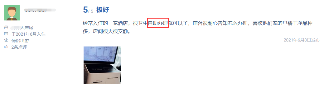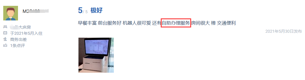 下面是體驗了自助辦理入住酒店的用戶評價,不管是和朋友入住、和情侶入住,還是獨自入住、商務入住等,都表示自助辦理入住服務表示滿意,數字酒店在一手防控疫情一手提高用戶體驗感開創新模式。