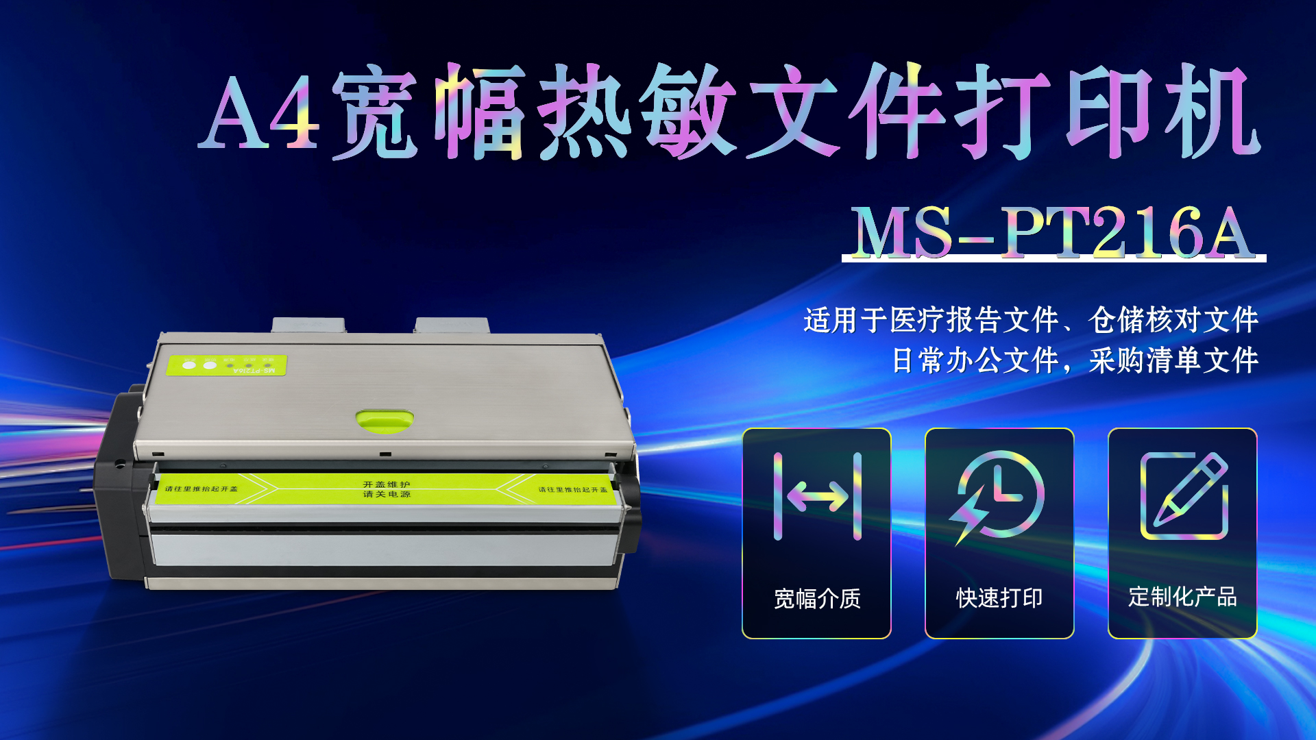 MS-PT216A系列是一款寬幅熱敏打印機,熱敏A4打印機,嵌入式熱敏打印機,紙張可調節打印機,同時還預留了多種對外接口,和標簽功能,具有黑標功能。